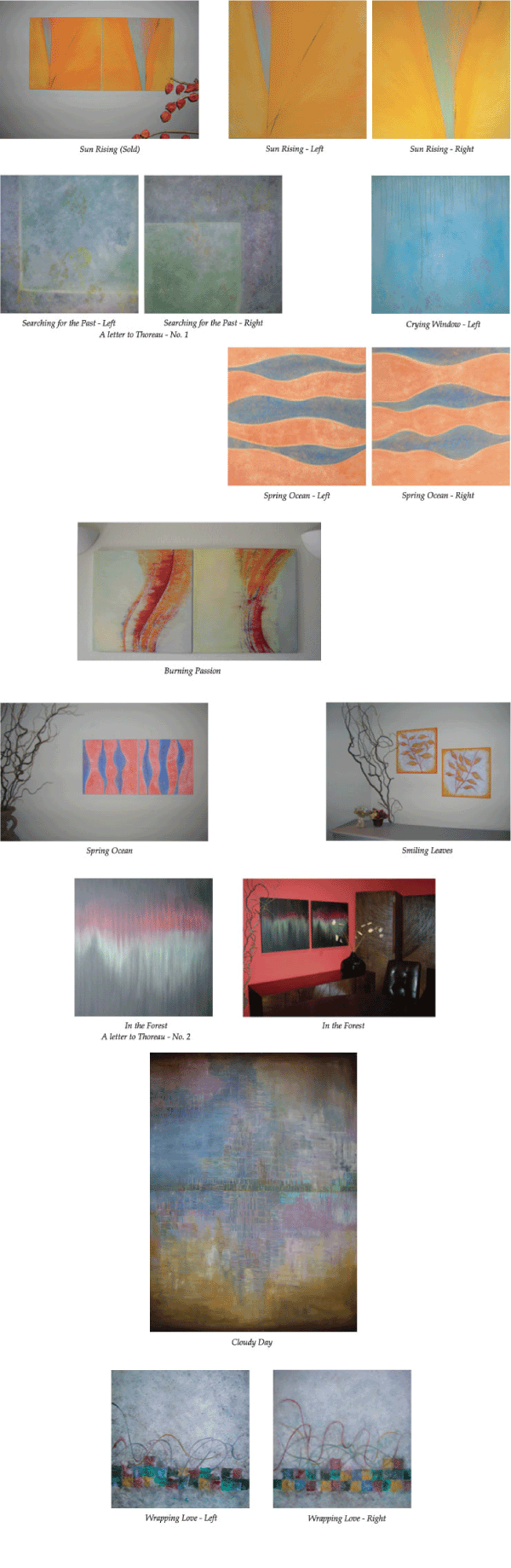 People may think of a painting as just another accessory that they purchase at the end of an interior design project. However, if you end up selecting a painting that doesn't match the style of your room, it can ruin your newly decorated interior space. A painting should be one of the first items on your shopping list because you don't want to compromise the selection of the painting by trying to match the colors and style of your sofa or rug. If you select a painting first, the process of choosing other items for your space will be easier than doing it the other way around. While I can produce different styles of painting, I have purposely chosen paintings whose subjects are expressive and metaphorical. Furthermore, my paintings are in a minimalist's style, coming from my Japanese background while the color palettes are free from the traditional Japanese colors such as blacks, browns and whites. My subjects are mostly abstract emotional expressions such as sadness, loneliness, happiness and passion in human life. If necessary, I can create custom paintings to match the mode and colors of your space.
